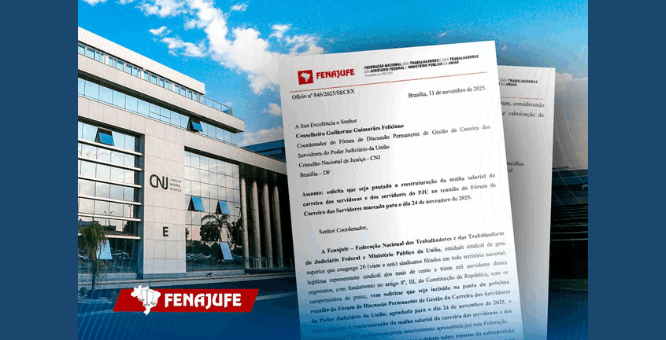 A Fenajufe encaminhou, na última terça-feira (11), ofício ao conselheiro Guilherme Guimarães Feliciano, coordenador do Fórum de Discussão Permanente de…