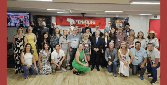 Notícia 14º COJAF reforça união e estratégia da categoria; Eusa Braga representa SitraAM/RR no encontro nacional 1 de dezembro de 2025 0 Comments 14º Encontro Nacional dos Oficiais e Oficialas de Justiça Avaliadores Federais (COJAF), promovido pela Fenajufe, reuniu representantes de todo o… Leia mais »