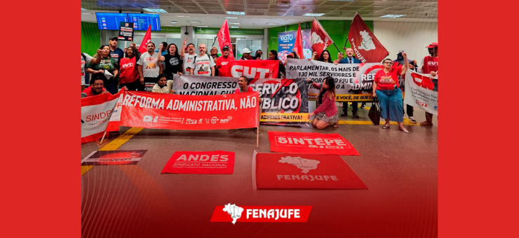 A Fenajufe se somou à diversas entidades representativas do funcionalismo e centrais sindicais, nesta terça-feira (2), para mais uma mobilização contra a reforma administrativa (PEC 38/25) no aeroporto de Brasília, na recepção aos parlamentares. O recado foi muito claro e…