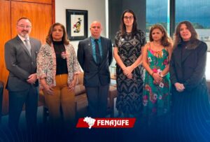 Durante a reunião, a Fenajufe também abordou a necessidade de derrubada do Veto nº 45/2025, com o objetivo de garantir o pagamento das parcelas de 8% – julho de 2027 e 8% – julho de 2028 aos servidores e servidoras, conforme proposta enviado pelo STF ao Congresso Nacional e posteriormente aprovado pelas Casas Legislativas.