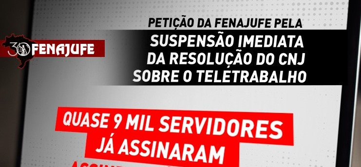 Assine petição da Fenajufe pela suspensão imediata da resolução do CNJ sobre teletrabalho 14 de dezembro de 2022 Sem nenhum diálogo com os servidores, o Conselho Nacional de Justiça (CNJ) mudou as regras para o retorno ao trabalho… Leia mais »