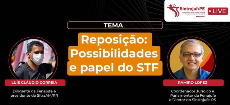 O presidente do SitraAM/RR, Luiz Cláudio Correa, também coordenador da Fenajufe, é um dos convidados do Sintrajuf-PE para live especial que acontece nesta terça-feira (19), com o tema “Reposição: Possibilidades e papel do STF”. O evento será transmitido através do…