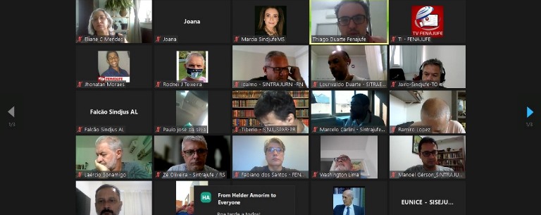 Sindicatos filiados à Fenajufe em todo o país participaram, nesta quarta-feira (19), da ‘reunião ampliadinha’ da entidade para discutir os próximos passos da luta em favor da reposição salarial de servidores públicos do Poder Judiciário da União (PJU) e Ministério…