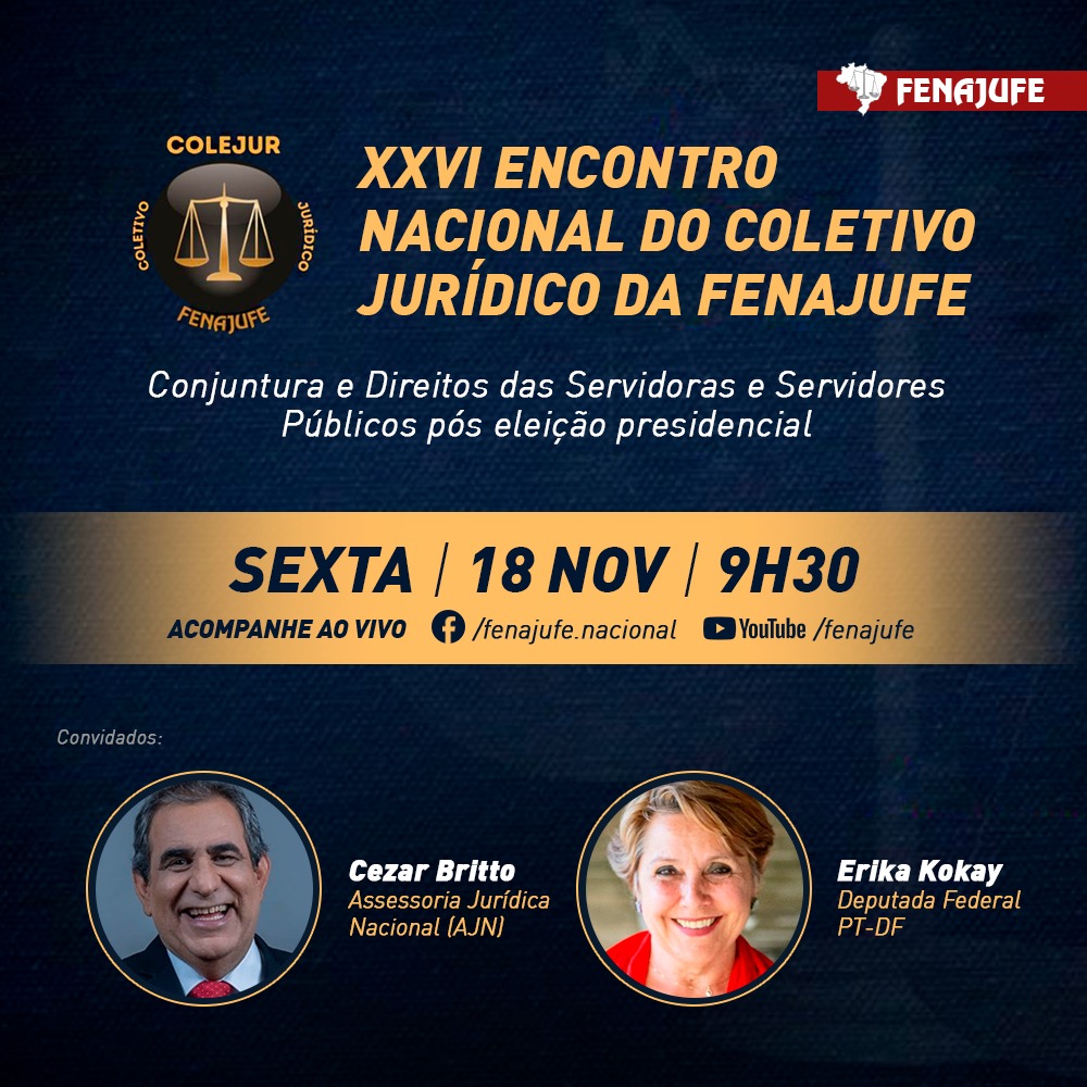 Cabe destacar que a Fenajufe transmitirá no YouTube e Facebook dois painéis do encontro: Conjuntura e direitos das servidoras e servidores públicos pós-eleição presidencial, às 09h30 (sexta); e Aposentadoria Pública e Funpresp – aspectos jurídicos em debate, às 09h (sábado).