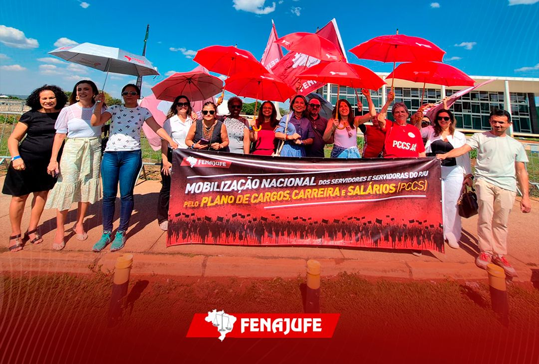 A Fenajufe e representantes de sindicatos de base realizaram ato em frente ao Supremo Tribunal Federal na tarde da última segunda-feira (6). A movimentação é parte das ações agendadas pela Federação para cobrar do presidente Edson Fachin, a proposta de reestruturação da carreira dos servidores(as) e se estenderá até que o presidente recém-empossado atenda aos pleitos da categoria.