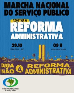 A grande mobilização faz parte da luta nacional das servidoras e servidores públicos contra a Reforma Administrativa. Reforma essa que ameaça direitos históricos de todo o funcionalismo e garantias existentes para a eficiente prestação dos serviços à população.