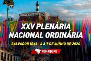 A Diretoria Executiva convocou os sindicatos de base para a XXV Plenária Nacional Ordinária da Fenajufe que será realizada na cidade de Salvador (BA), entre os dias 4 e 7 de junho de 2026. O mote definido pela comissão organizadora passeia por pontos turísticos essenciais da cultura baiana e dá o tom do tema central da plenária, que será a reestruturação da carreira: