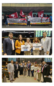 Na manhã do último dia (3), a Federação esteve no aeroporto de Brasília para pressionar os parlamentares que desembarcavam na capital. O ato contou com a participação de diversas entidades do serviço de público – Estaduais e Municipais.