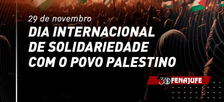 No Dia Internacional de Solidariedade com o Povo Palestino, celebrado nesta quarta-feira (29), a Fenajufe divulga as duas moções que foram aprovadas na XXIII Plenária Nacional da Fenajufe em apoio à população da Palestina. A data foi instituída em 1977…