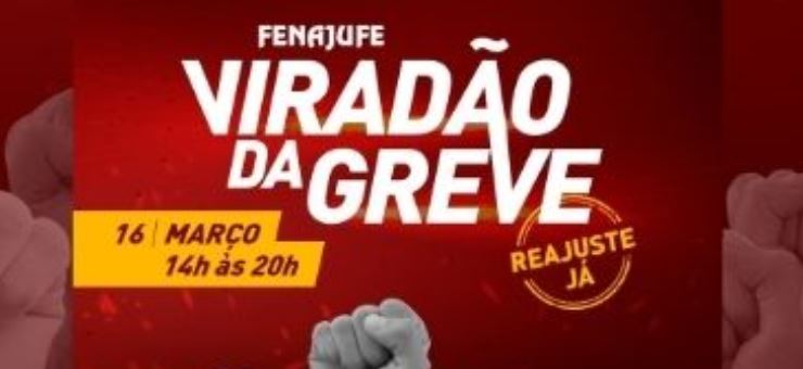 Acompanhe o Viradão da Greve: https://www.youtube.com/watch?v=3jJTMBiQGh0 Programação: 9h – Ato na Esplanada com retransmissão ao vivo (origem LidMin ou Fonasefe)14h – Abertura Oficial do Viradão da Greve14h10 – 15h –Live da Direção da Fenajufe com avaliação do ato e das…