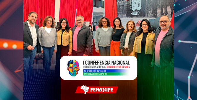 Notícia Fenajufe e sindicatos participam da I Conferência Nacional Inteligência Artificial com Direitos Sociais 3 de outubro de 2025 0 Comments A Fenajufe e sindicatos de base marcam presença na I Conferência Nacional Inteligência Artificial com Direitos Sociais, em São Paulo,… Leia mais »
