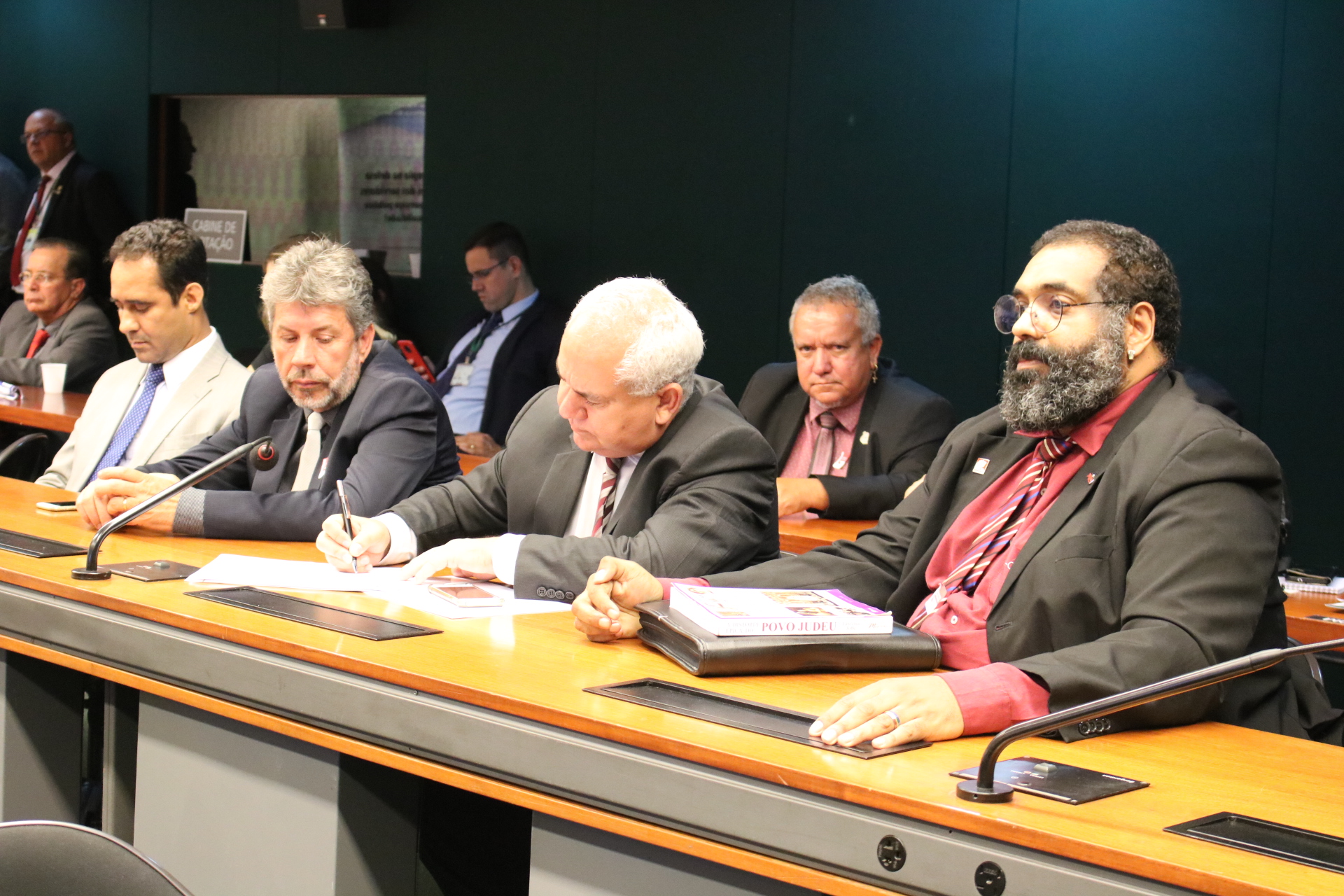 Os coordenadores Fabiano dos Santos, José Aristeia, Roberto Policarpo e Roniel Andrade participaram de reunião da Frente Parlamentar Mista em Defesa do Serviço Público, nesta terça (5).