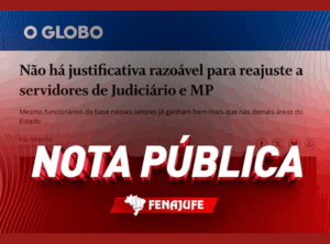 A Federação Nacional dos Trabalhadores e das Trabalhadoras do Judiciário Federal e Ministério Público da União (Fenajufe) vem a público, mais uma vez, — e o fará sempre que tentarem desqualificar servidoras e servidores do PJU e MPU — para REPUDIAR veementemente a nova empreitada do editorial de O Globo contra o serviço público. Sim, os servidores do Poder Judiciário fazem parte do funcionalismo.