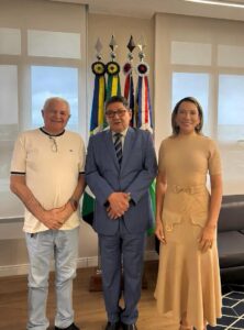 A visita foi conduzida pelo presidente do SitraAM/RR, Edmilson Marinho, que esteve acompanhado da vice-presidente, Eusa Braga, e do diretor financeiro, Luiz Cláudio Corrêa. O encontro teve caráter de agradecimento ao presidente do TRT-11, desembargador Jorge Álvaro Marques Guedes, pelo apoio institucional e pela atenção contínua às pautas apresentadas pelo sindicato ao longo de sua gestão.